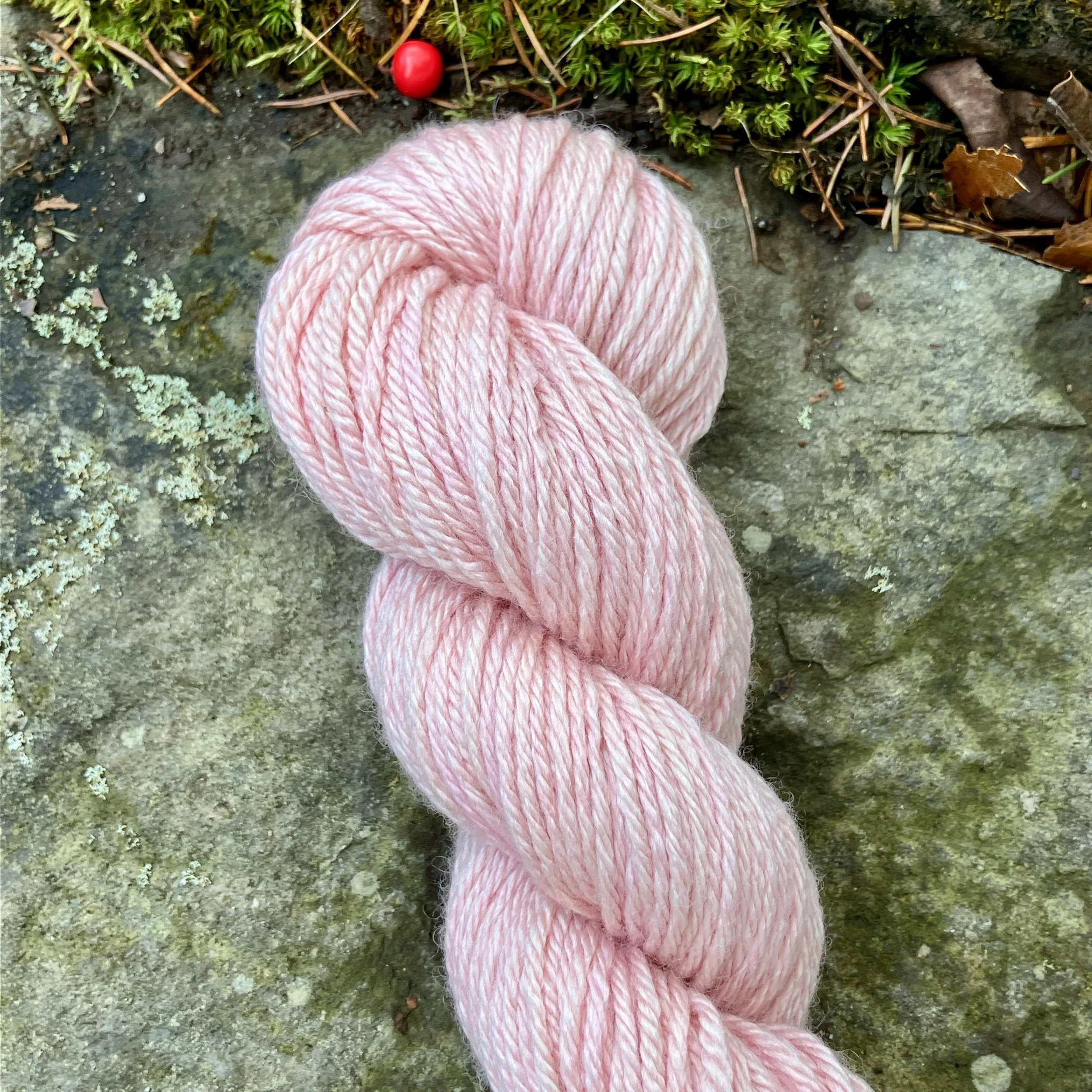 This yarn is a luxurious blend of soft merino wool and lustrous silk. Because of the subtle way this yarn blend takes the natural dyes, I am able to create elegant and quite delicate color ways. The yarn, which is next-to-skin soft with a velvety texture and sheen, elegantly drapes and shows off stitches from simple stockinette to the most intricate of cables.