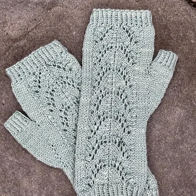 One 50g skein is enough for  a pair of fingerless gloves . One pair weighs 35-40g.